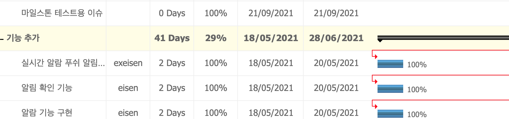 마일스톤 공정률 구하기.