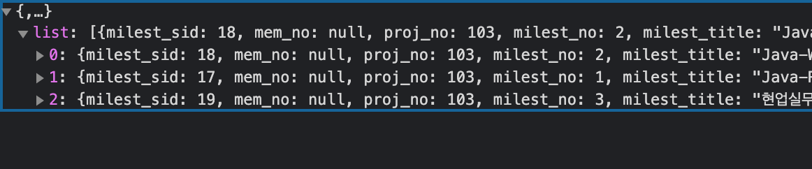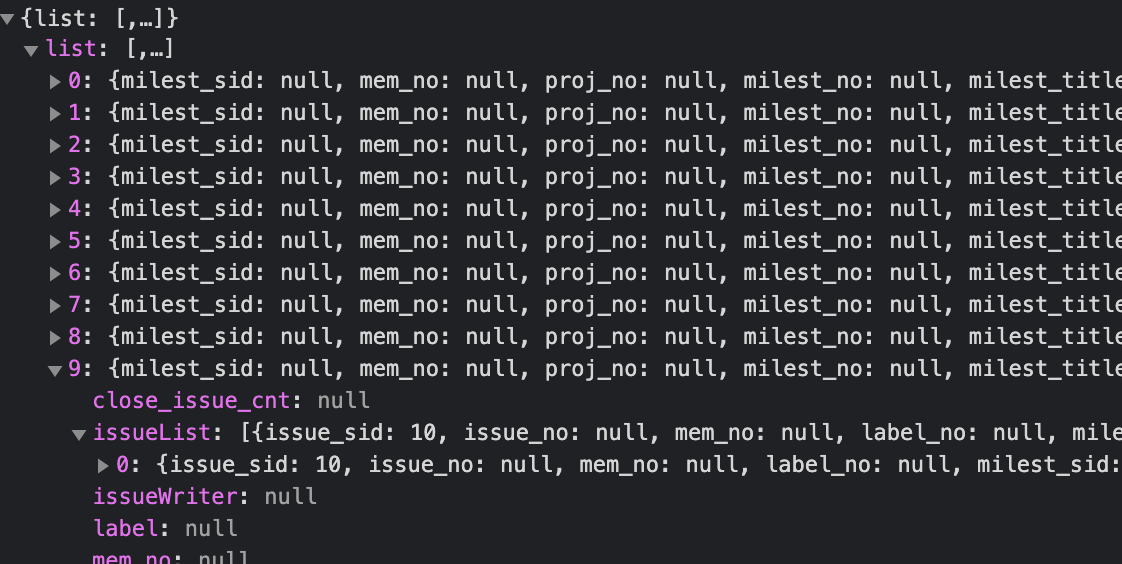 - milestoneList 의 milestone 내부에 issueList가 존재하는 형태.
