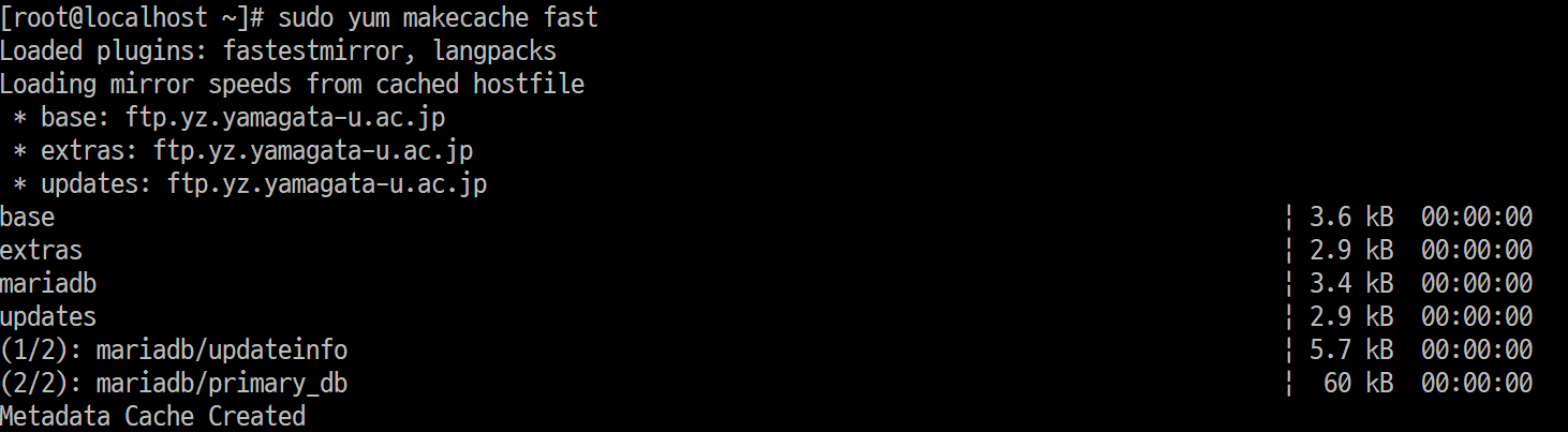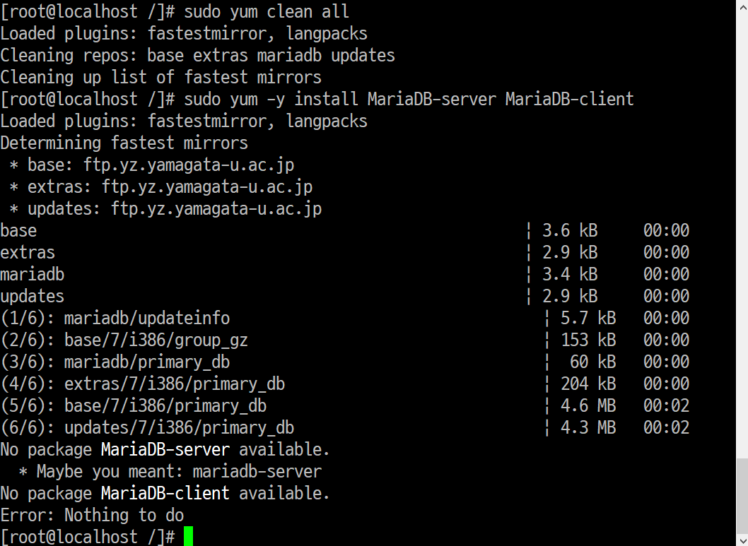 $ sudo yum -y install MariaDB-server MariaDB-client