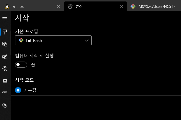 - 옵션에서 defaultProfile을 git bash의 guid로 교체하시면 됩니다.