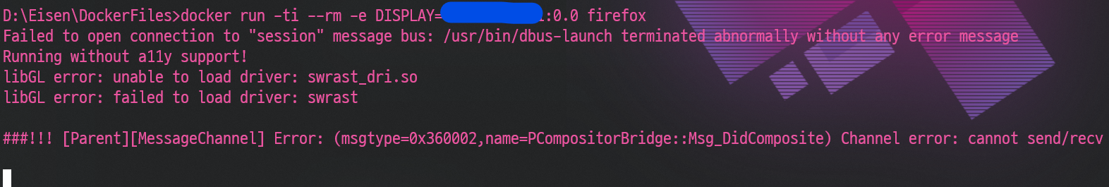 $ docker run -ti --rm -e DISPLAY=**YOUR_IP**:0.0 firefox